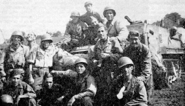 Хотелось бы ненадолго остановиться на славянской составляющей дивизии Леклерка. Помимо подполковника Румянцева, в списке личного состава дивизии русские и украинские (либо польские) фамилии встречаются сплошь и рядом: командир 6-й роты 2-го батальона Чадского маршевого полка лейтенант Иванов, командир 5-го эскадрона 1-го маршевого полка марокканских спаги лейтенант Кочановский и многие другие. В самой испанской «Девятке» в группе управления механиком-водителем бронетранспортёра М3 «Спасение» (Rescousse, бортовой номер 410301) служил сержант по фамилии Павлов – по некоторым сведениям, он погиб 11 ноября 1944 года в Эльзасе. Впрочем, это тема отдельного исследования.